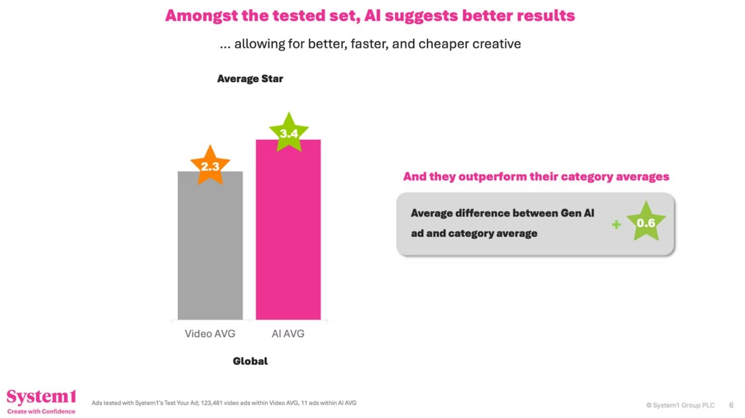 New research from System1 and Jellyfish tested 18 AI-assisted video ads against their database of 123,000 traditionally produced spots. The AI ads averaged 3.4 stars on emotional impact versus 2.3 for the traditional baseline—a 48% improvement. Coca-Cola's AI holiday ad, the one that sent marketing Twitter into collective meltdown over authenticity and “the death of craft,” scored a perfect 5.9 out of 5.9.