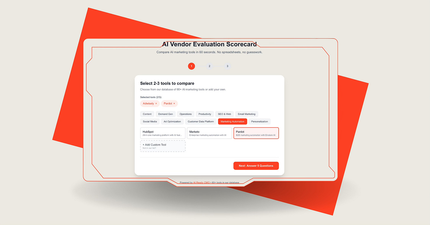 AI Vendor Score gives you apples-to-apples comparisons using the same evaluation framework we use at AI Ready CMO.