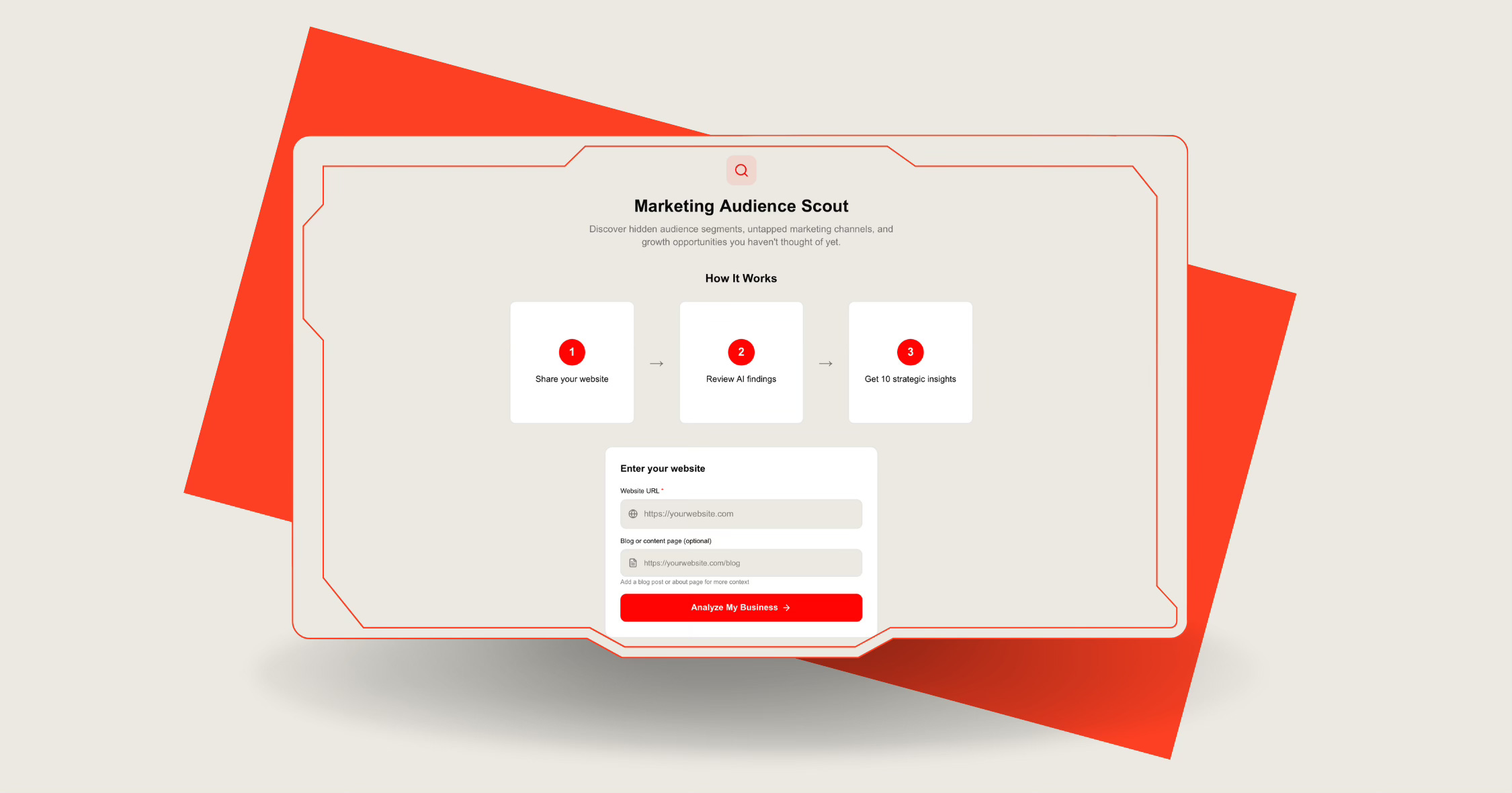 Enter your website. Get 10 strategic audience insights: hidden segments, untapped channels, and growth opportunities your competitors haven't spotted yet.