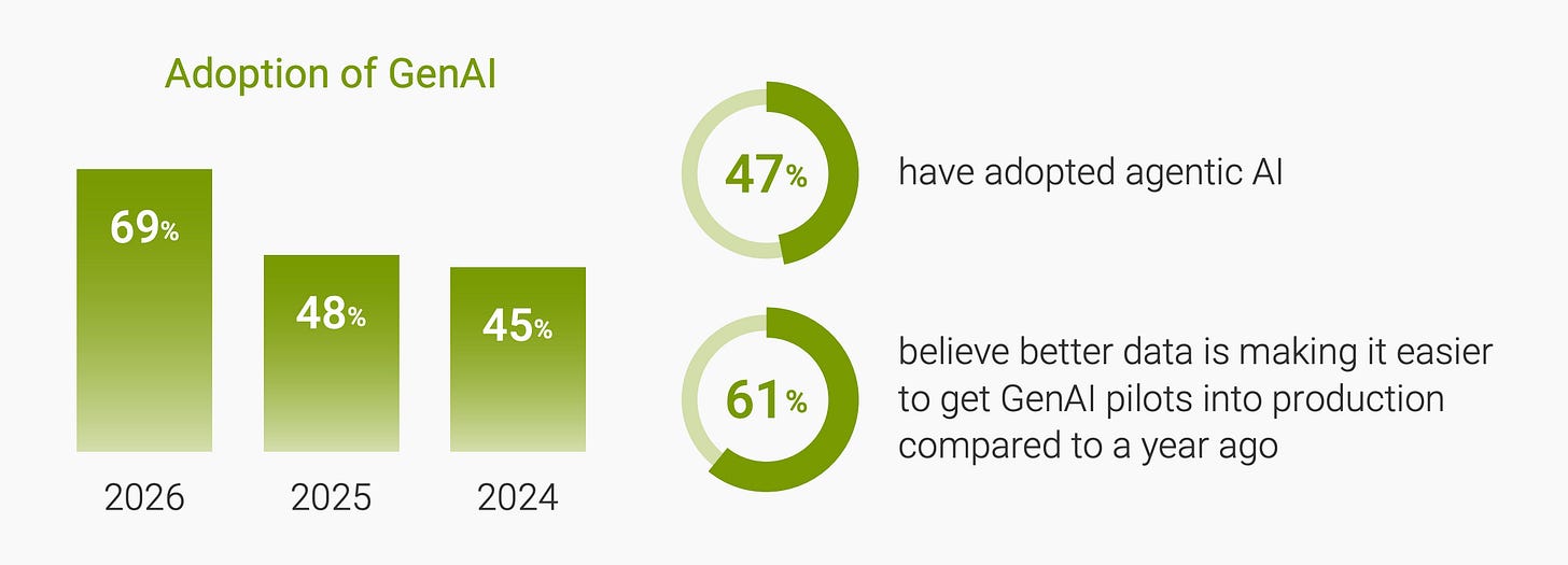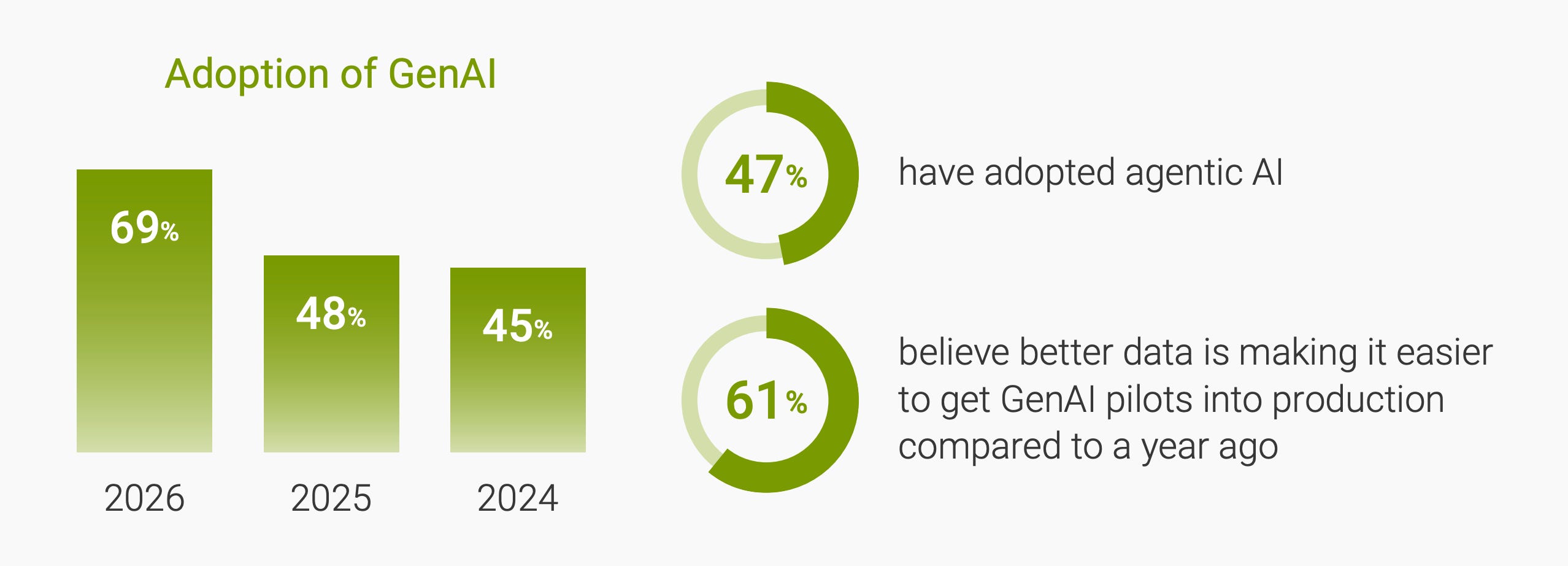 69% of enterprises have deployed generative AI, but three-quarters of data leaders say their workforce needs upskilling in both data and AI literacy.