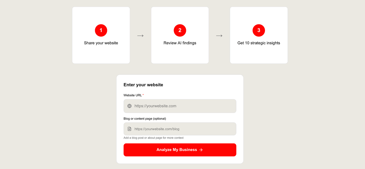 You get an audience insights report with hidden segments, untapped channels, messaging gaps, campaign angles, and partnership opportunities. Download as TXT.
