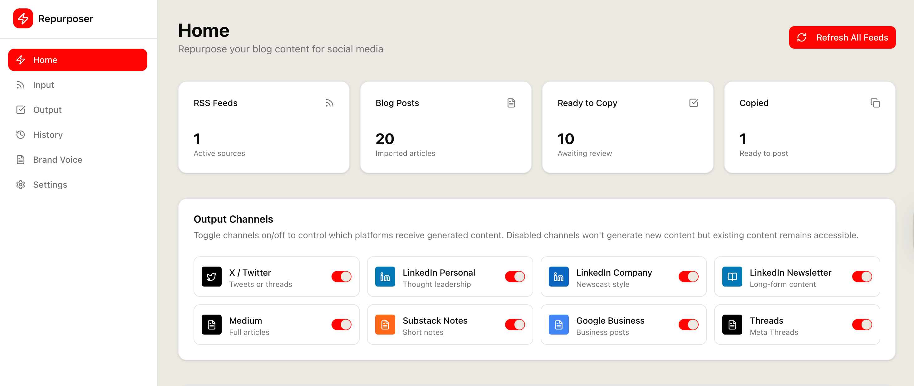 We started with a problem: spending too much time repurposing newsletter content to social, even with AI. Chat interfaces are bad for copy-pasting. AI didn’t learn our voice well enough. Hard to scale to multiple platforms.